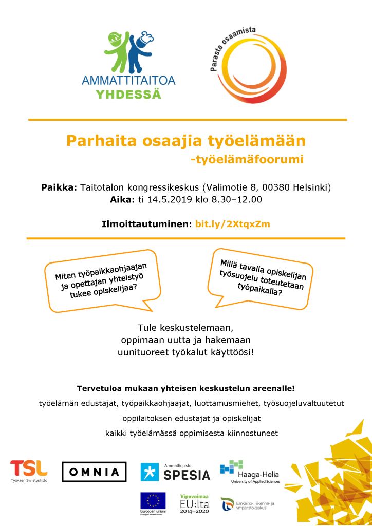 Aika: 14.5.2019 klo 8.30-12 Paikka: Taitotalon kongressikeskus (Valimotie 8, 00380 Helsinki)